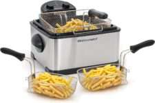 The Presto 05411 GranPappy Electric Deep Fryer offers a 6-cup oil capacity with 1500 watts of power, featuring a fixed 375°F temperature and non-stick interior for easy cleaning, all in a compact 9.1 x 8.8 x 8.5-inch, 4.2-pound design. The Vexon 1800W 5 Liters/21 Cups Large Electric Deep Fryer boasts a 5-liter capacity, adjustable thermostat…