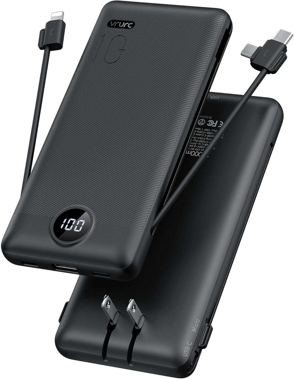 Integrated wall plug makes recharging the bank simple.Attached various cables support multiple types of phones.
