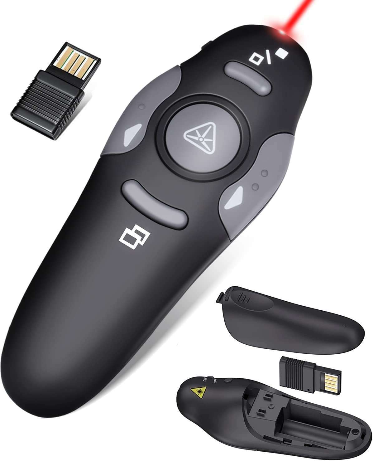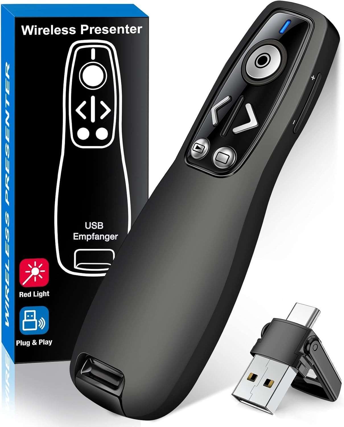 Features a red laser pointer for clear, precise presentation control.